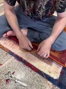 バハールがお願いしている職人さんのカット技術は大変すばらしく、表面に段差のない美しい絨毯が出来上がります。