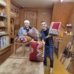 手触りのいい木肌と柔らかいOLDのキリムで作られた椅子は、