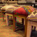 イランから素敵なOLDキリムを仕入れて、カットした後日本の職人さんが1点づつ手作りしているスツール。